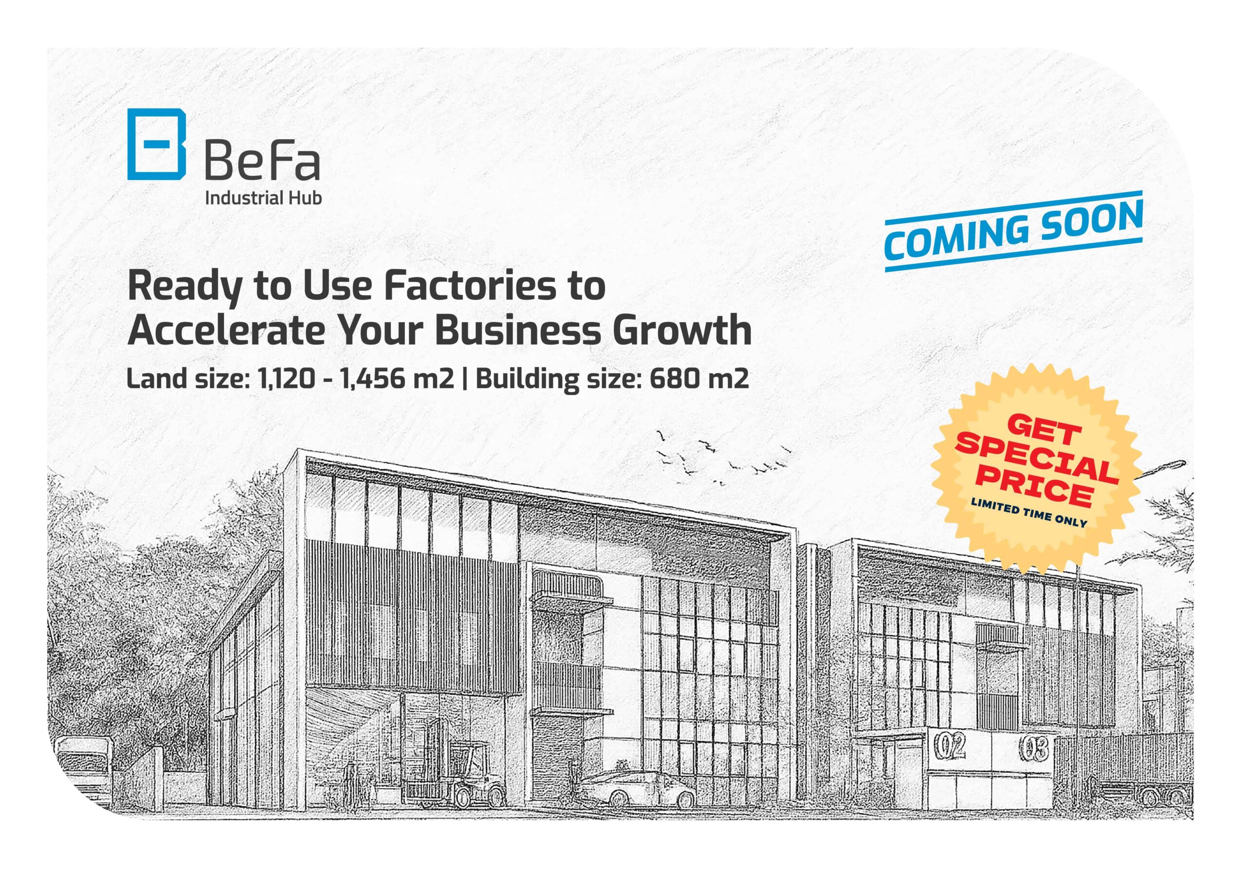 BeFa Industrial Hub is a newly developed Standard Factory Building (SFB) cluster, pre-built and fully operational.