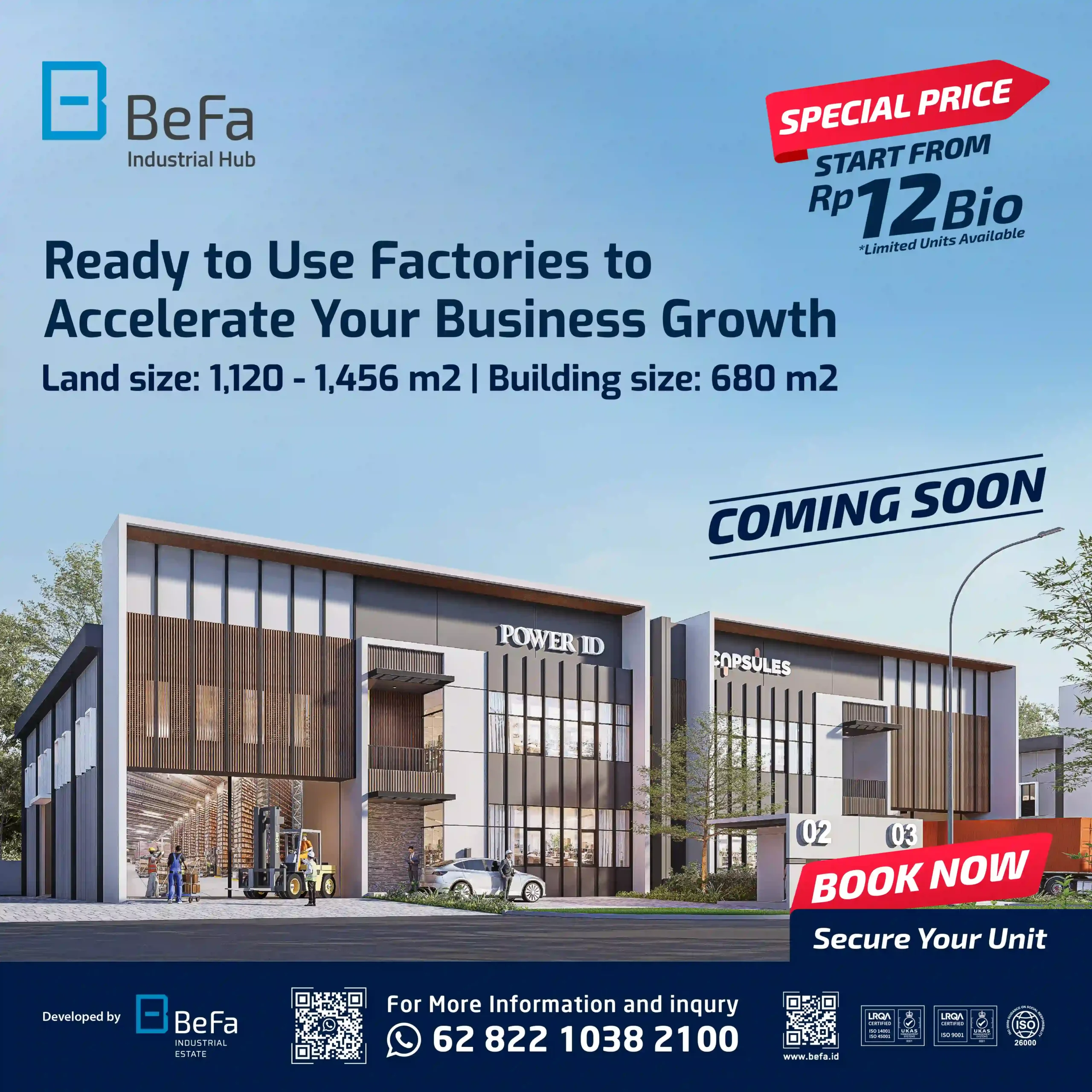Suitable for light and medium industry needs with a spacious unit size starting from 1,008 m2 per unit.
